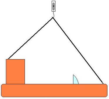 You may be able to find a scale that can directly measure weights of this magnitude. If this is the case, measuring the weight of a hovercraft is quite simple, as shown in the diagram. Be sure to zero the scale before taking the measurement. To do this, hold the scale with only the lift straps hanging on it, then adjust it so that the scale reads zero. Once this is done, simply hang the hovercraft from the scale using the same straps and measure its weight.